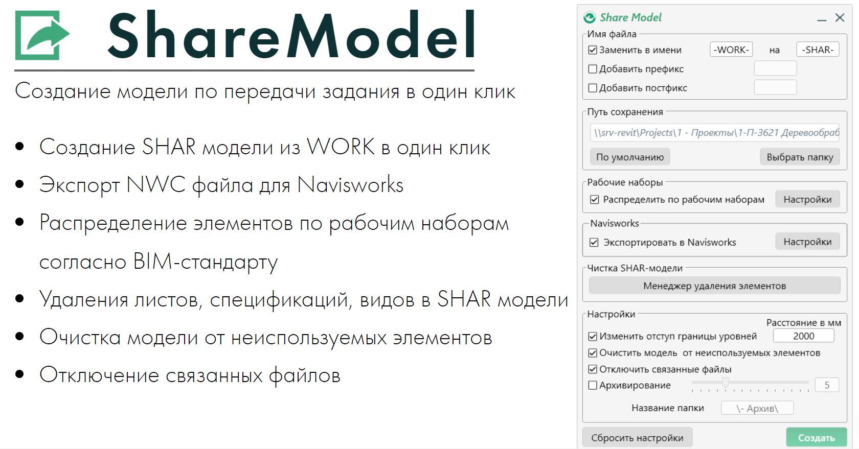 Обзор плагина Share Model для Revit от ЭНЭКА