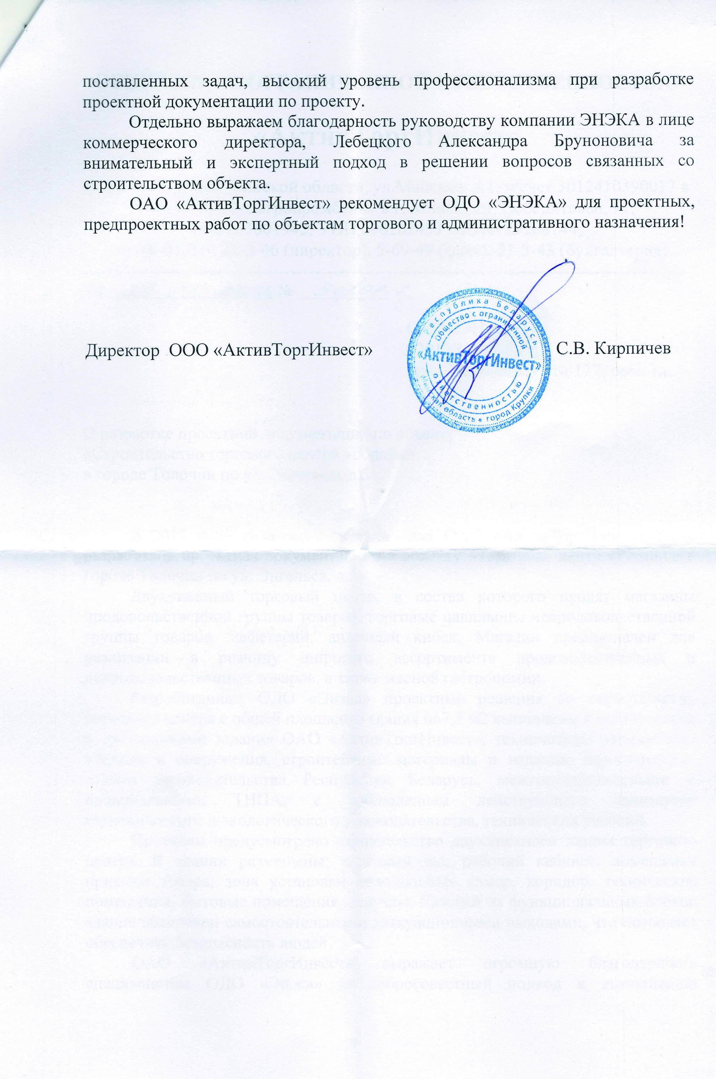 - вниманию к запросам и потребностям клиента – мы адаптируем результаты проектирования под проект, создаем дополнительные визуализации, консультируем по инвестиционным вопросам и на постпроектной стадии.