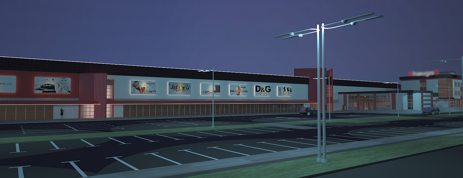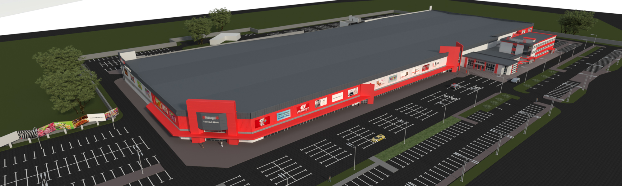 Включает: продовольственный гипермаркет, кафе и рестораны быстрого обслуживания, объекты розничной торговли, кинотеатр, детскую комнату, строительный гипермаркет, паркинг, энергокомплекс (котельная).